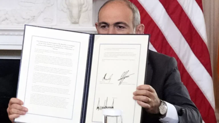 Ermenistan Başbakanı Paşinyan ve Azerbaycan Cumhurbaşkanı Aliyev 8 Ağustos Cuma günü ABD Başkanı Donald Trump’ın ev sahipliğinde Beyaz Saray’da bir araya geldi. İki ülke lideri toplantıda kalıcı barış niyetini ortaya koyan bir deklarasyona imza attı.